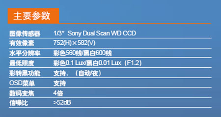 1、清晰度与色彩还原;2、彩转黑功能;3、宽动态功能。