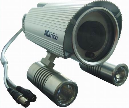 佳信捷AC-680是一款采用时下流行的Array芯片的阵列式红外摄像机。从外观看,该机也采用了亮银色全铝喷涂UV膜工艺,做工扎实考究,不乏其产品线一贯坚持缜密的大厂做派。该机的外型突破了常见的Array红外机下置红外阵列管的模式,其下方的两支红外管与摄像机镜头构成“品”字形排列,有效支持了红外补光距离与周围散射角度,对于众所周知的Array红外机补光效能,厂方宣称的60m应该能完全胜任。拆机后,我们看到该机仍采用了1/3寸CCD,并在其后叠加了一块SONY 3142R DSP视频处理PCB板,厂方这样的周到考虑可补足对画质上的色彩饱和度与纠正色偏。该机的调焦模式较为保守,未设计任何机身外调模式,需要调节好固定的光圈/焦距后再把镜头盖套上去,在安装使用中稍显繁琐。机身后部有一块电源板专门负责为两枚Array供电。在我们进行的图像对比中,AC-680毕竟由于比单板机多了视频处理技术在多项评估中均名列前茅,噪点控制得也相当少,总体来说,AC-680采用的Array阵列式芯片方案大大提高了红外灯的寿命和实际应用效果,外观工艺、图像质量均属上乘,据称厂家的市场指导价格仅为12XX,在这个价位区间上的选择层面预计无出其右。
