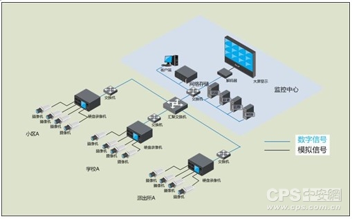 一般来说,大型监控系统都能达到一千点以上,最典型的案例就是平安城市。这类应用的最大特点就是系统庞大、复杂、数据量大,大部分都会采用分级存储、中心集中备份的策略,对数据的存储设备性能、稳定性要求更严格,监控中心对数据的安全性更加关心。
