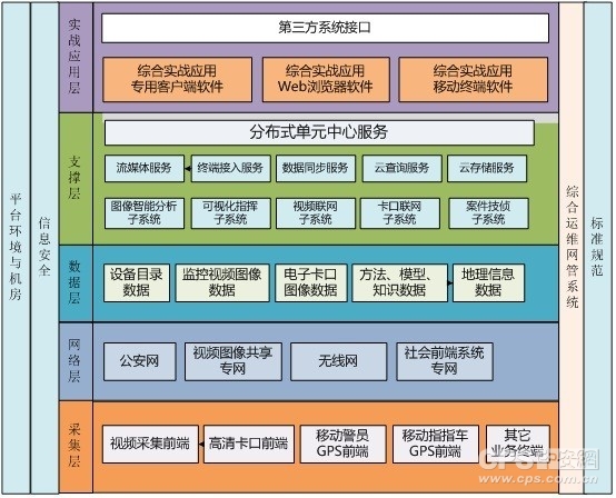 当前,大多数安防系统集成项目大多要求统一规划和技术协调,实现有效网络及信息资源共享,形成面向公安实战的综合应用系统集中平台,实现扁平化的横向系统联网,如同级的视频系统、智能交通、PGIS、三合一、图像技侦等。然而,扁平化的综合应用系统集中平台仍然有在实际应用中的不足之处,如:不支持分布式的多级管理要求,上下级单位无法联动,信息无法向上级共享,系统无法按与组织机构相符的模式去运行。因此,横向扁平化联网与纵向立体化的联网需要有机结合起来,更有利于服务于各级公安机关与警种。覆盖面更广的各类可用社会信息监控监测系统资源急需整合。