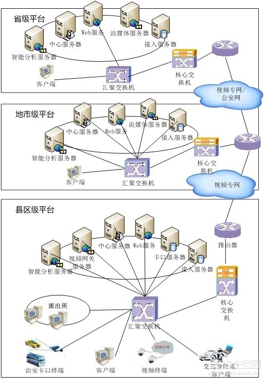 基础系统联网 建立以省市县三级联网为基础的大范围下的基础系统联网。各级公安社会治安监控系统联网、社会各类监控系统联网、各类电子卡口联网、智能交通相关子系统联网、大情报系统联网、案件管理等核心业务联网、PGIS联网、移动警务系统联网