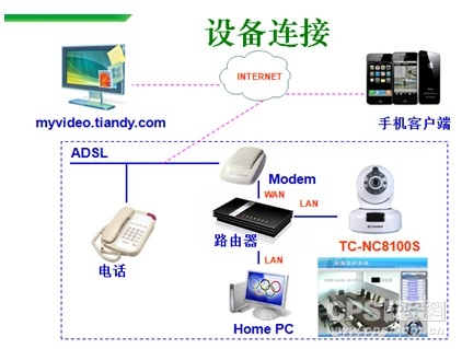 2. 前端摄像机可通过IP,域名,主动模式等接入,并且天地伟业免费提供myvidoe域名解析平台,供使用ADSL或者无静态IP的用户提供域名解析;