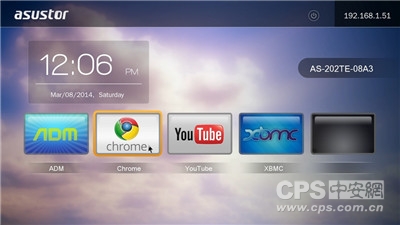 按照前面所述,各个设备连接完毕之后,直接开启华芸AS-202TE即可,投影出来的界面如上图所示,这也是202TE的HDMI输出界面。该功能里面也内置自带Chrome浏览器、YouTube等。其中的ADM是和局域网内的电脑用浏览器进入NAS的IP地址后的系统操作界面一致,直接在这里管理也是很便捷。