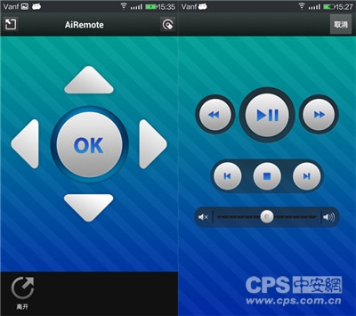 这里使用的是安卓版的AiRemote,在NAS连接显示器的时候,左边界面即是可以充当遥控器使用。而右边的就是多媒体模式进入XBMC里面后使用。稍后也会给大家展示。