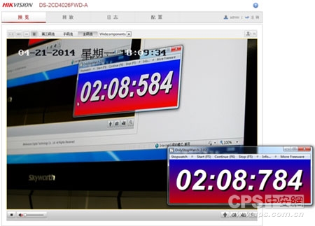检测 5-延时:小编将摄像机对准显示器同时调出秒表进行延时检测,发现该机的延时为200ms左右,表现良好。