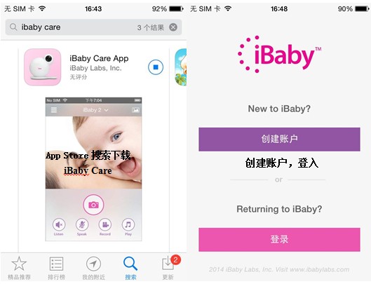 ① IOS设备已连接WiFi,进入App Store搜索下载iBaby Care ;