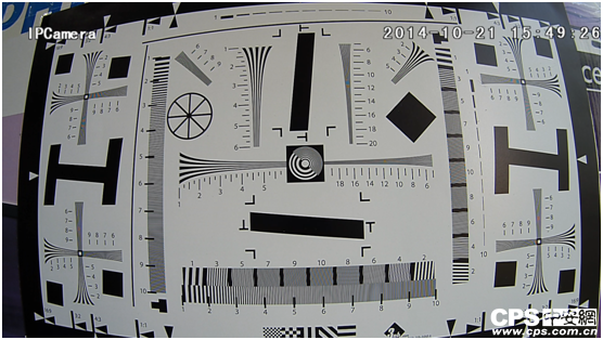 检测1-清晰度:将镜头调至最低变倍后对准清晰度测试卡,该机的实时水平清晰度为1070TVL,垂直清晰度达到1100TVL,边缘的实时清晰度为850TVL。