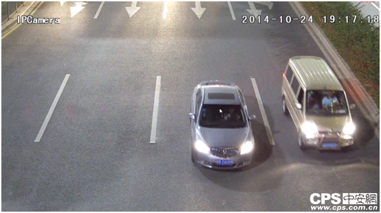 检测3-道路实景:夜晚将摄像机(该处照度为17Lux)架于马路天桥之上,摄像机(1080P@60fps、4Mbps,其他为默认设置)对准路面以观察来往之车辆,此时画面亮度适宜,稍有噪声,但控制合理,路边绿化带的植物枝叶清晰,运行车辆内部之明暗效果、司机动作及衣服颜色皆可看清,部分车牌亦可分辨,且车尾未有拖影出现,此条件下,该机具备如此表现已实属难得。