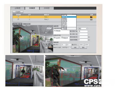 [page]大华IPC外观评测[/page] 智能化功能是这款摄像机的亮点之一,该摄像机支持出入警务区、人员检测、人脸检测、音频侦测、物品遗留、徘徊检测、物品消失、非法停车、快速移动、视野偏离、人员聚集、ROI\SVC智能编码等智能视频分析功能。在测试时,测试人员设置了两种规则:出入警务区和人员检测,并划好相应的区域,设置好属性,然后观察实际的应用效果。发现当走动的人员经过设定的区域内,摄像机会立即会报警,并会持续用黄色线标出该人员的行动轨迹,并指明该人员的行动方向。经过测试人员长时间地观察,在测试人员划分的区域内,只要是经过的人员均能准确形成报警,即便是多个目标也能同时识别。