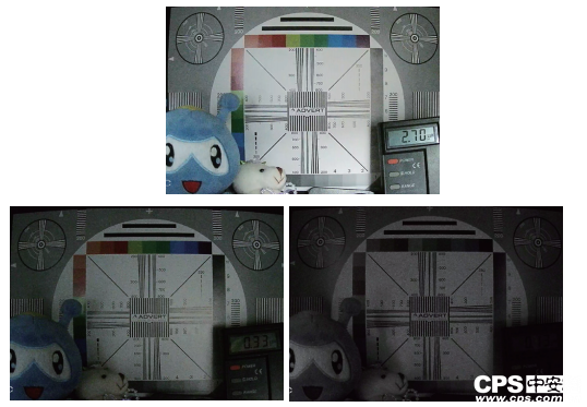 在低照度测试中,将DH-IPC-HF8291E放入灯箱中,从10LUX开始,不断降低箱内照度,并随机取值观察。在2.7LUX时,画面有些许噪点,但得益于该机的3D降噪功能,噪点得到很好抑制。继续降低箱内照度,在1.15LUX时,依旧呈现彩色画面,但公仔、照度计读数、清晰度测试卡依旧能看得非常清楚。继续降低箱内照度,在0.33LUX时,画面虽然噪点增多,但是仍旧呈现出清晰的彩色画面。在如此低照度情况下居然能达到这样的效果,真的让人惊讶,测试人员一度还以为是照度计损坏了,换上另外一个照度计发现照度计并没有损坏。继续降低箱内照度,在0.12LUX的超低照度下,公仔、照度计读数、清晰度测试卡上面的刻度仍旧可以清晰看清,在0LUX照度下,依稀可以分辨出被摄物体,可见该机的低照度效果堪称“星光级”。