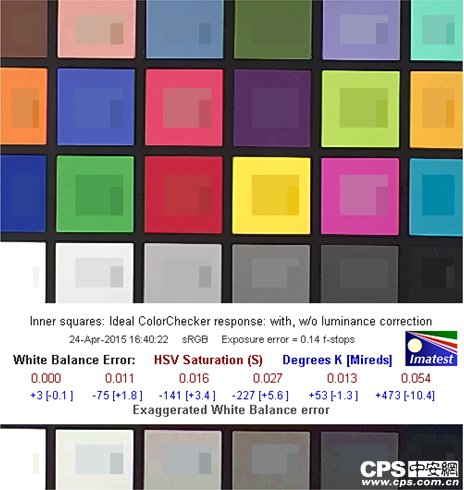 测试结果:饱和度、色彩偏差均在范围内,色彩还原度高。