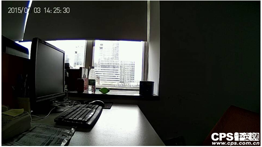 将摄像机置于窗口进行拍摄,室内外照度差约为22000:700,暗区亮度很低,无法辨认物体,摄像机动态范围表现极差。小蚁摄像机摆放不宜对着窗口、门口。
