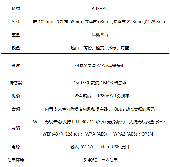 ABS+PC外壳,用料扎实,手感不错,掂在手里是那种比较厚重的感觉。前面为一组非可调焦摄像头、100°视角、内置红外。整机除了顶部的摄像头外,在底部还有一个可以进行360度旋转的底座,方便进行旋转调整角度,实现多个角度灵活录制。从整体来看,小水滴机身非常小巧,不会占用太多空间。
