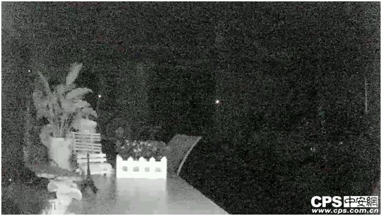 摄像机微光夜视开启之后,切换成夜间模式,画面转换成黑白模式,整体画面噪点较多,物体较近的能辨别。夜视效果总体表现稍弱。微光夜视和红外夜视还是有差距。