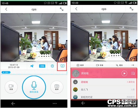 进入语音对讲功能“按住说话”,进行手机对摄像机对讲,语音清晰流畅,无电波声和回声影响通话质量。
