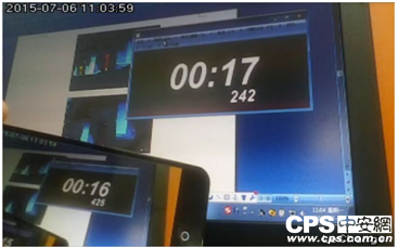 乐橙TC1智能摄像机在上电之后,33s内完成自检,在外网环境下连接速度和缓冲时间都非常短,在本次测试中设备显示在线后大概再过3.5s就能观看视频。下面我们测试一下视频画面在标清情况下的实时性;