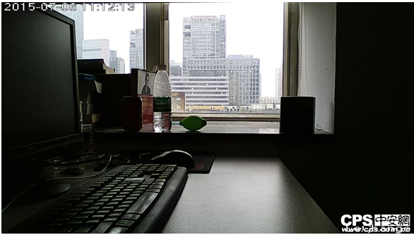 将摄像机置于窗口进行拍摄,室内外照度差约为22000:700,暗区亮度很低,无法辨认物体,摄像机动态范围表现欠佳。乐橙TC1摄像机摆放时不宜对着窗口、门口。
