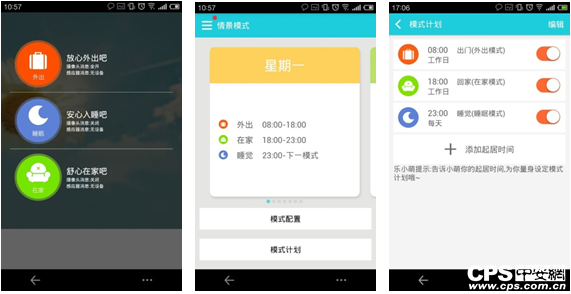 值得一提的是,乐橙APP在报警推送采用智能模式。我们可以根据在家、离家、睡觉三种模式智能切换。离家、就寝时自动进入保护状态,智能移动检测报警,让家更安全。下面我们测试一下异常推送情况: