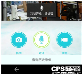 当按住中间麦克风图标,就可以启动手机与摄像机对讲,手机端默认开启喇叭功能。手机开启对讲,有一个等待时间,大概为4s钟左右。在手机对摄像机、摄像机对手机进行语音对讲时,整体噪声较小,但语音延迟、回声和电波声影响较大。整体测试中,乐橙TC1易受到外界的干扰,导致客户端、摄像机出现电波声、回声。