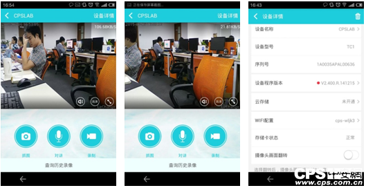 上面是TC1摄像机连接过程,整个连接过程感觉步骤稍多,但按提示一步一步操作,用户可以很方便的实现产品与手机的互联,且设备有对应的语音提示,直到用户将设备连接成功,这点让用户感到很贴心。