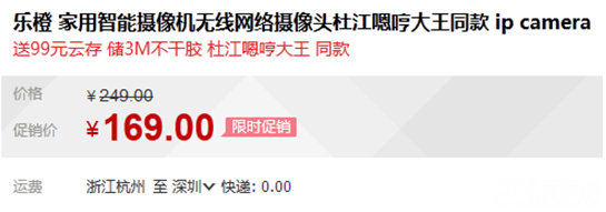 乐橙TC1在大华官网提供购买接口,旗舰店原价249,现亲子价169元。计算一下,有一年的免费云存储,这个价格也值了。