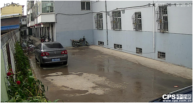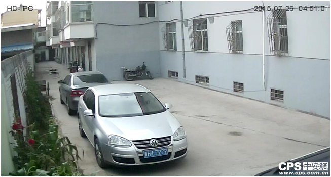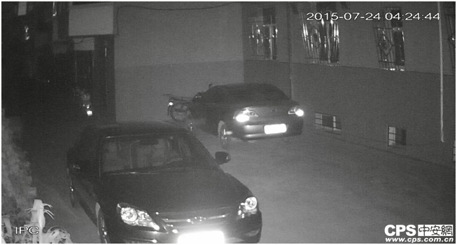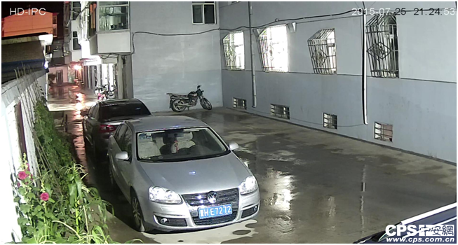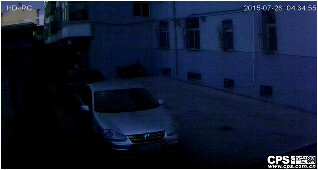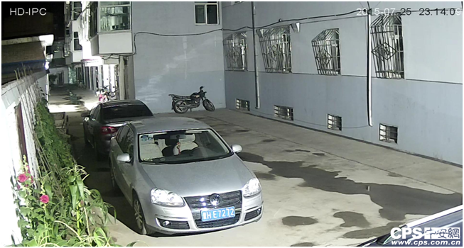 图3 晚上23:14(住户的灯已经全部熄灭,不过依靠旁边的LED补光灯,效果几乎和图2没什么区别,车牌还是看的很清楚)