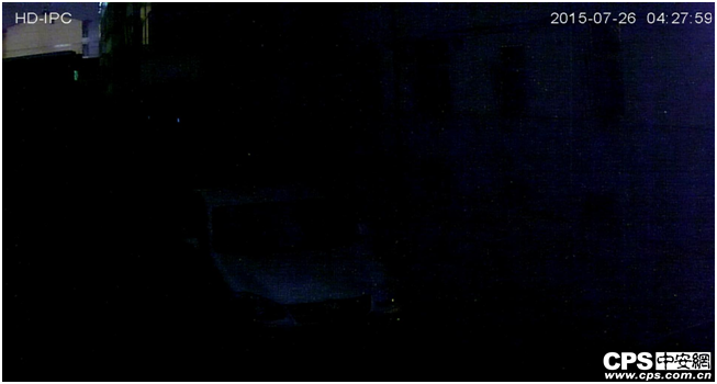 图4 同样是晚上23:14分,关闭补光灯后的效果,什么都看不到,黑漆漆一片,只隐约看到旁边有一家住户的灯微亮,测试当天是阴天,而且现在雾霾天气居多,晚上真的是很少有星星。实际使用证明,靠环境中这一点点微光,还是什么都看不到。