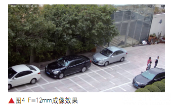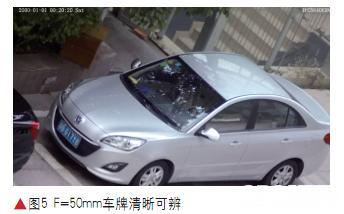 该镜头的焦距范围是f=12-50mm,适用于中长距离的监控应用。测试时,在12mm的焦距下,虽然该镜头给人的感觉是监控视场范围并不大,但是其能提供的监控解析度相比普通高清镜头却拥有出色的景深和更好的视场表现力。50米外的车辆和行人能清晰表现,且整体解析度非常出色。在最远端50mm,相当于4倍光学变焦场景下,车辆牌照能清晰看清。如图4、5。
