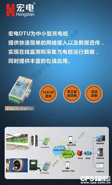 对于中小型充电桩,基于宏电DTU的通信联网方案,可以提供快速简单的网络接入及数据透传,实现在线监测和采集充电桩运行数据等功能,同时可以提供丰富的在线应用。