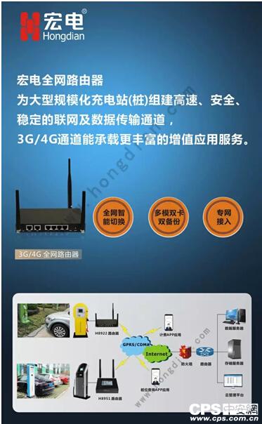 对于大型规模化充电桩(站),采用宏电全网路由器,可以组建高速、安全、稳定的联网及数据传输通道,3G/4G通道能够承载更丰富的增值应用服务。