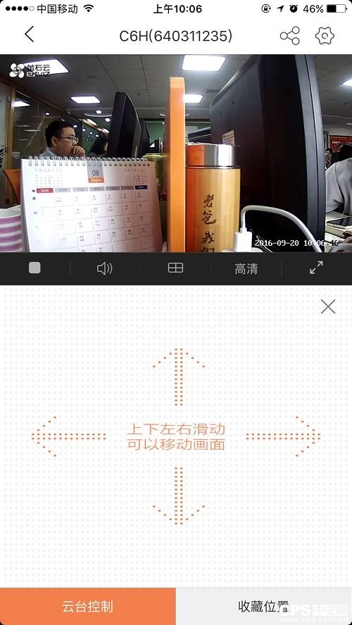 C6H支持水平355°旋转,垂直向上90°、向下10°转动,基本可以监控到场所的角角落落。