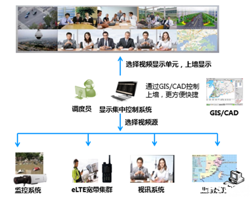 第三、统一上墙管理。根据用户需求,可以将监控界面、集群界面、电视墙界面、矩阵操作界面等集中控制上墙显示。调度员使用GIS/CAD系统时,可以选择要上墙的视频源,实现一键上墙,更方便快捷,便于操作会控,释放更多资源。这种统一管理模式更切合应急指挥调度,具有传统调度系统无可比拟的易用性和信息直观性,让调度指令的传达如同面对面般简单、有效。