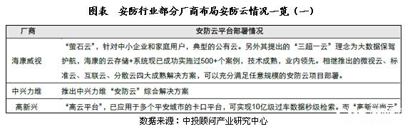 未来云平台将成为安防企业竞争的核心。通过云平台可以引申出一系列配套的产品、服务和解决方案,未来平台建设能力较强的厂商可通过将平台免费提供给用户使用,而由于平台转换成本高,这将大大增加用户的使用粘性。在此背景下,各大厂商纷纷转战安防云,呈现出百家争鸣的大好前景。