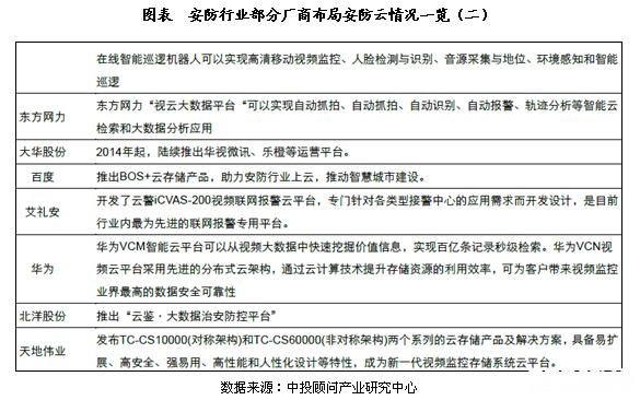 中投顾问发布的《“十三五”数据中国建设下物联网行业深度调研及投资前景预测报告》指出,安防云平台是基于云计算、大数据分析、物联网、云存储等技术来满足现代化安防的需求。主要解决四大问题:云监控、云存储、云分布、云备份和云恢复等。