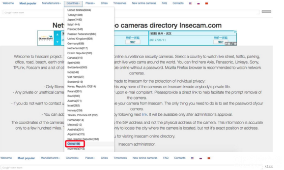 视频监控网络安全的问题再次被提及并引起重视。自安防行业进入联网时代以来,摄像头被攻击,导致监控遭直播的事件屡屡发生。如2014年,深圳19个视频监控遭全球直播;2015年,“3•15”晚会上揭露了智能摄像头存在的泄露隐私等安全隐患;2016年12月, 全球被“破解”的摄像头在Insecam网站上直播, Insecam显示中国有164个摄像头被直播监控画面。