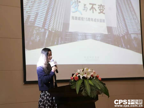 图为:海康威视副总裁何虹丽回顾了海康威视15年来的变与不变