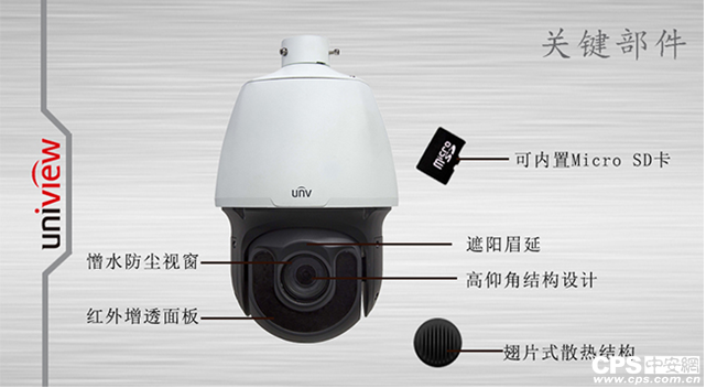 【CPS中安网 cps.com.cn】宇视科技面向合作伙伴及客户推出33倍星光球机(IPC622SR-X33HU):兼具星光级低照度及H.265编码技术;支持多种智能算法;采用宇视U-Code智能编码优化技术,1M码流看高清等特性,已广泛应用于政府、教育、司法、电力、楼宇等诸多行业监控场景。