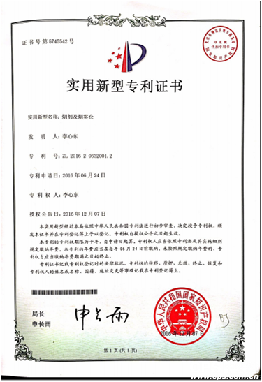 摘要 日前, 北京富尼泰克安防科技有限公司技术团队组耗时两年开发的烟雾仓及烟雾发生器,荣获中华人民共和国国家知识产权局的实用新型专利证书。