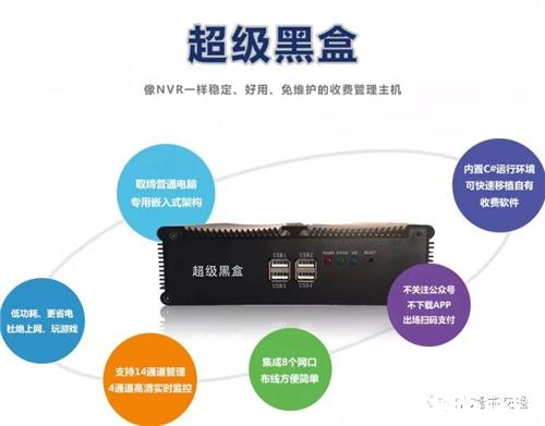 超级黑盒采用linux系统嵌入式主机,集成度高,低功耗无风扇结构,硬件稳定性更好。收费管理软件以代码的方式嵌入到Linux系统中,置于主板Flash芯片中运行,速度更快,既不会变慢也不会中毒,属于收费管理专用设备,帮助工程商有效地杜绝因管理员误操作引起的售后顾虑。