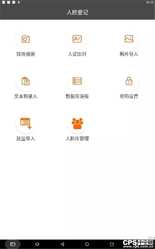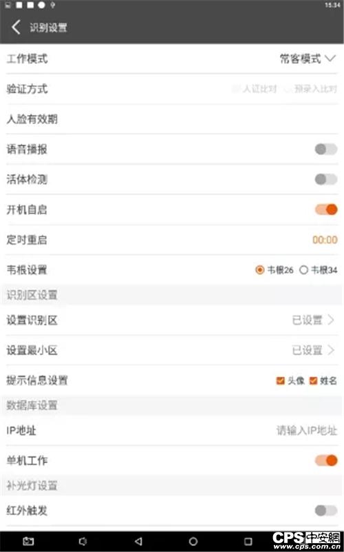 本次测试主要使用该款终端的单机功能,开机后系统直接进入人脸识别页面,此时连续点击屏幕右上方四次可进入人脸识别设置页面。在页面的最下方,可以选择进入现场人脸登记步骤。