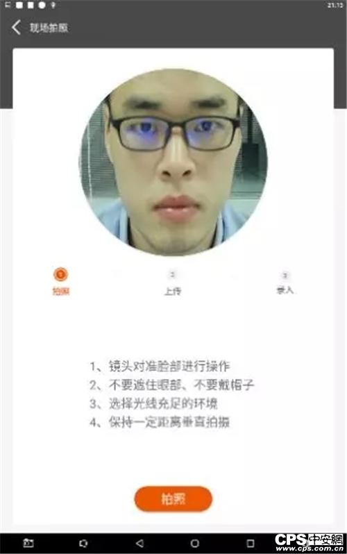 测试人员面对镜头正视前方,拍摄一张照片用于后续的人脸识别测试,随后按照系统指示填入相关信息,保存提交后系统显示登记成功。