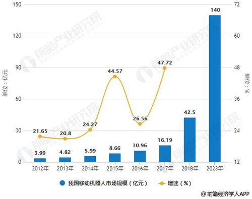 2012-2023年我国移动机器人市场规模统计及增长情况预测