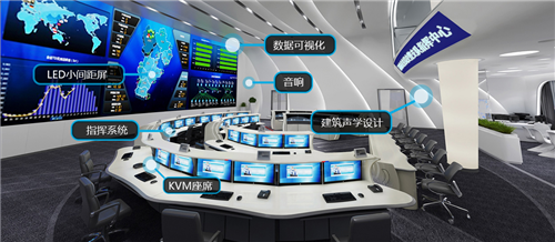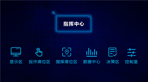 在基础架构设计上,根据指挥中心的基础职能,全面覆盖了显示区、操作席位区、指挥席位区、决策区、数据中心、控制室等功能区域,形成一个完整的大数据指挥中心架构。