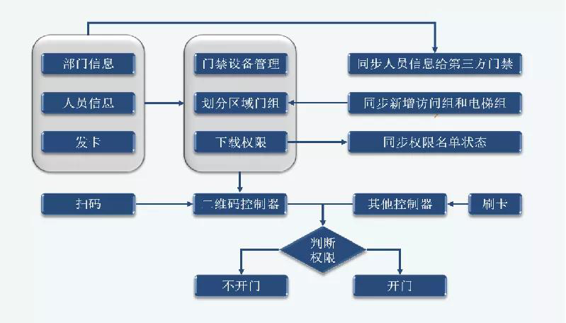 考勤系统:通过大堂处通道闸二维码、刷卡、人脸识别,在识别时时产生考勤数据,并且将考勤数据给OA系统调用实现数据互通。