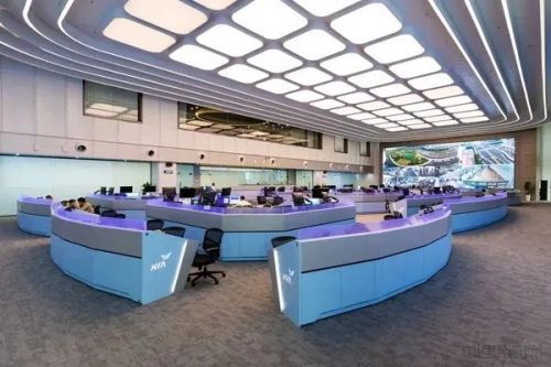 IAC运控大厅(机场联合指挥中心),是机场的“核心大脑”,集飞行区指挥中心、航站楼指挥中心、场区指挥中心、安防指挥中心、应急指挥中心五大核心指挥模块及其他功能模块于一体,共计100多个席位。