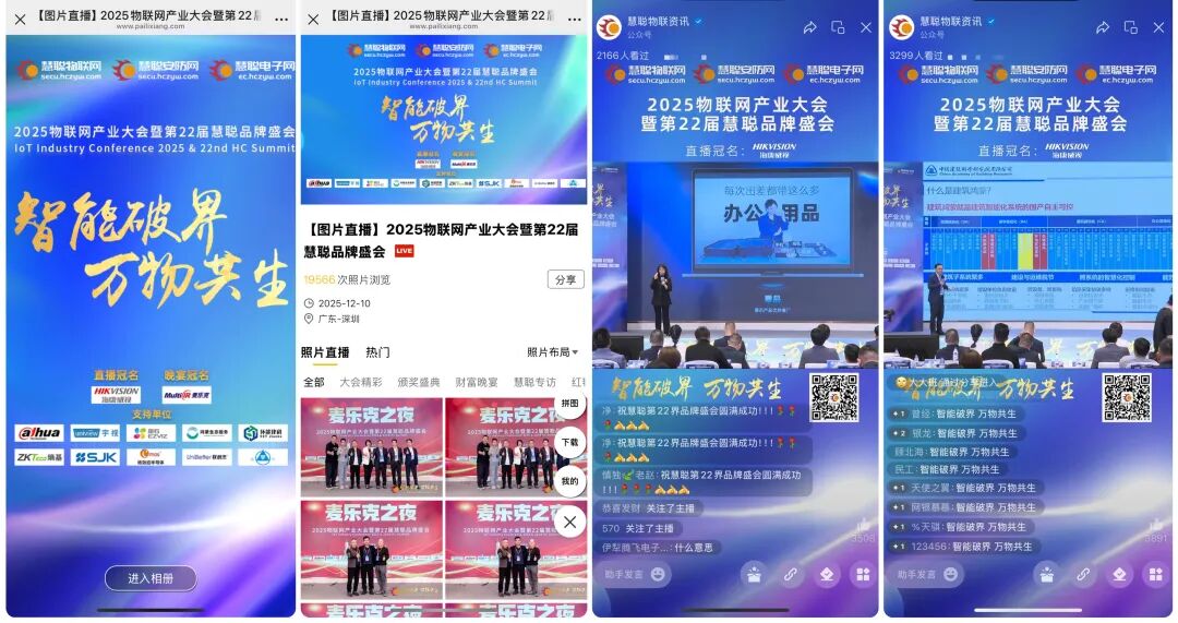 12月10日,由慧聪物联网、慧聪安防网、慧聪电子网联合主办的“智能破界,万物共生——2025物联网产业大会暨第22届慧聪品牌盛会”,在深圳龙华希尔顿逸林酒店圆满举行。
